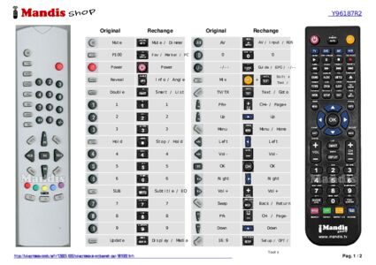 Un document est inclus pour vous aider à utiliser facilement la nouvelle télécommande, en indiquant la correspondance des boutons.