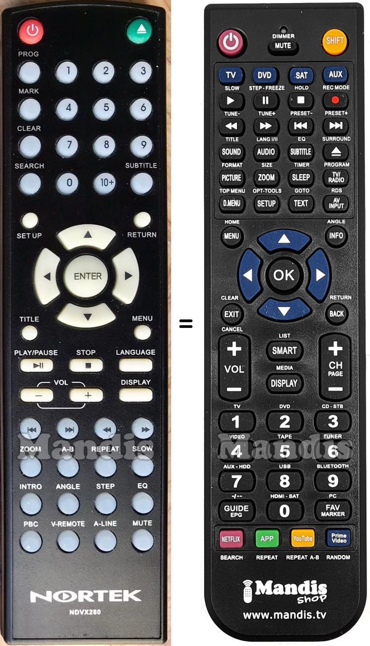 Cette télécommande remplace entièrement votre NDVX280 et offre toutes les fonctions de l'originale.