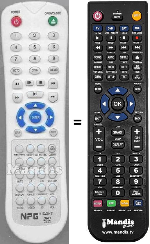 Télécommande qui remplace celle d'origine car elle possède les mêmes fonctions.