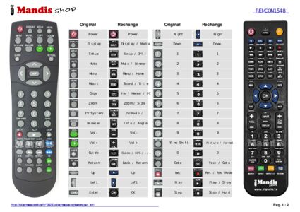 Un document est inclus pour vous aider à utiliser facilement la nouvelle télécommande, en indiquant la correspondance des boutons.
