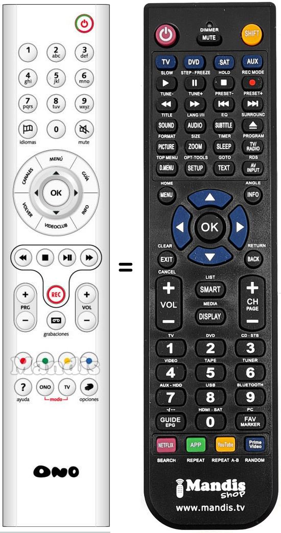 Télécommande qui remplace celle d'origine car elle possède les mêmes fonctions.