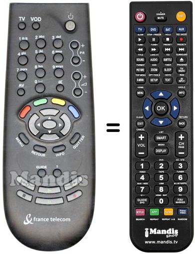 Télécommande qui remplace celle d'origine car elle possède les mêmes fonctions.