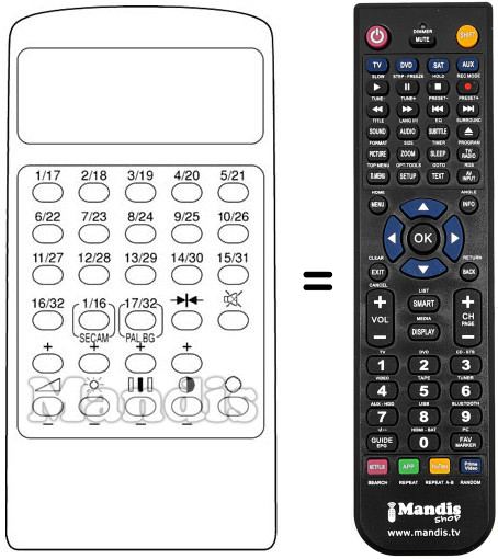 Télécommande qui remplace la télécommande d'origine MULTIMAT 832 car elle possède les mêmes fonctions.