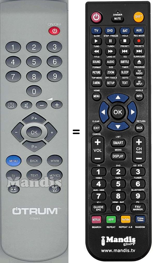 Télécommande qui remplace celle d'origine car elle possède les mêmes fonctions.