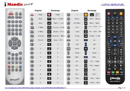 Un document est inclus pour vous aider à utiliser facilement la nouvelle télécommande, en indiquant la correspondance des boutons.
