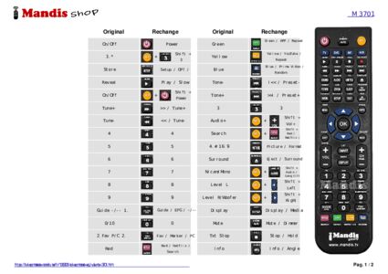 Un document est inclus pour vous aider à utiliser facilement la nouvelle télécommande, en indiquant la correspondance des boutons.