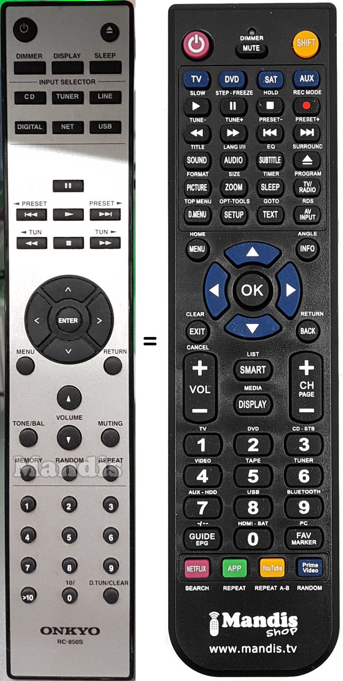 Télécommande qui remplace celle d'origine car elle possède les mêmes fonctions.