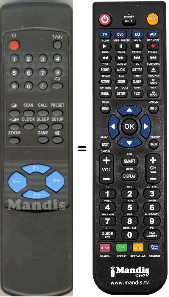 Télécommande qui remplace celle d'origine car elle possède les mêmes fonctions. Il ne s'agit pas d'une télécommande universelle mais d'une télécommande qui remplace celle d'origine. Vous recevrez la télécommande prête à fonctionner, vous n'aurez qu'à mettre les piles. Il n'est pas nécessaire de la programmer. Nous vous garantissons que la télécommande aura exactement les mêmes fonctions que celle d'origine.