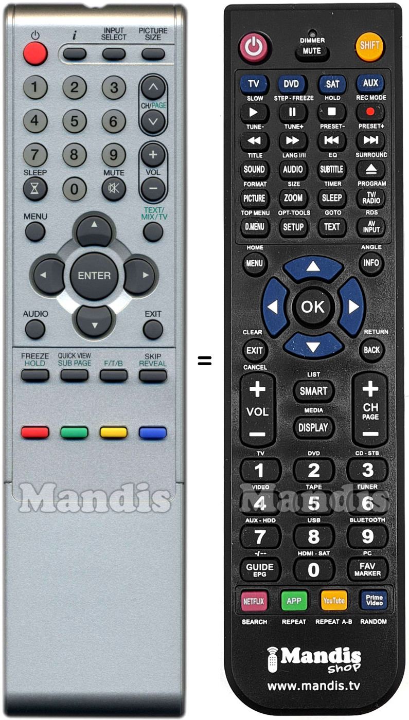 Power, Info, Input Select, Picture Size, 1, 2, 3, 4, 5, 6, 7, 8, 9, 0, Ch + / Page +, Ch - / Page -, Vol +, Vol -, Sleep, Mute, Menu, Text / Mix / TV, Up, Right, Down, Left, Enter, Audio, Exit, Freeze / Hold, Quick View / Sub Page, F / T / B, Skip / Reveal, Red, Green, Yellow, Blue