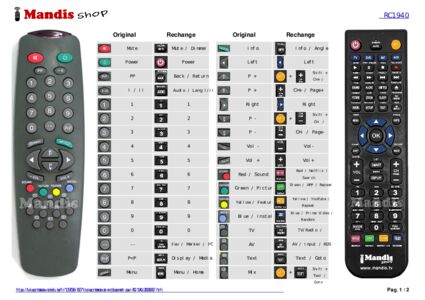 Cette télécommande remplace entièrement votre RC1940 et offre toutes les fonctions de l'originale.