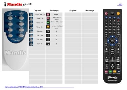 Cette télécommande remplace entièrement votre AA3 et offre toutes les fonctions de l'originale.
