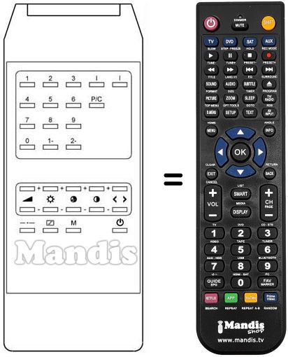 Télécommande qui remplace celle d'origine car elle possède les mêmes fonctions.