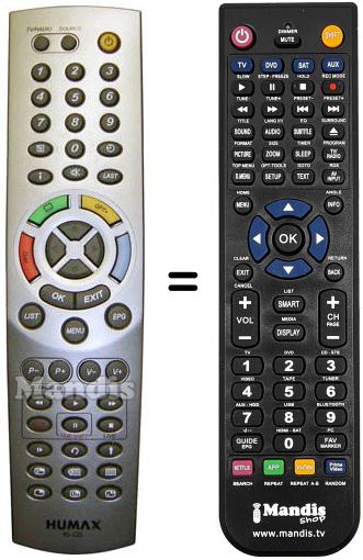 Télécommande qui remplace celle d'origine car elle possède les mêmes fonctions.