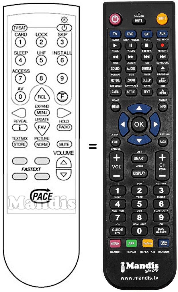 Télécommande qui remplace celle d'origine car elle possède les mêmes fonctions.