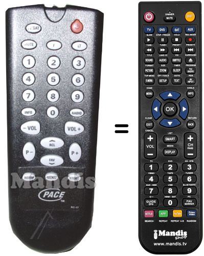 Télécommande qui remplace la télécommande d'origine 9162002 (RC17) car elle possède les mêmes fonctions.