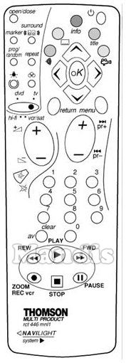 Télécommandes équivalentes qui remplacent la télécommande PATHÉ MARCONI RCT 446 et possèdent exactement les mêmes fonctions :