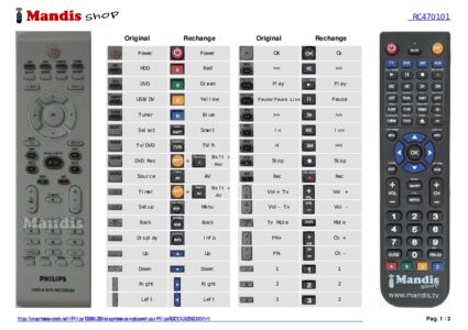 Un document est inclus pour vous aider à utiliser facilement la nouvelle télécommande, en indiquant la correspondance des boutons.