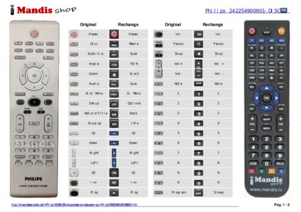Un document est inclus pour vous aider à utiliser facilement la nouvelle télécommande, en indiquant la correspondance des boutons.