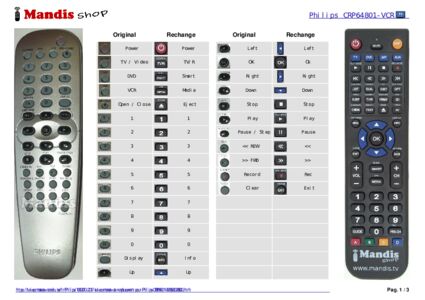 Un document est inclus pour vous aider à utiliser facilement la nouvelle télécommande, en indiquant la correspondance des boutons.