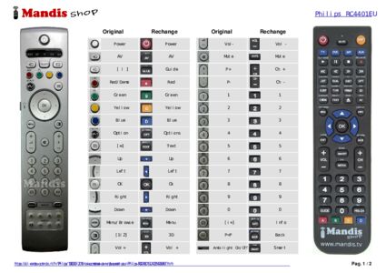Un document est inclus pour vous aider à utiliser facilement la nouvelle télécommande, en indiquant la correspondance des boutons.