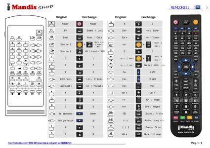 Un document est inclus pour vous aider à utiliser facilement la nouvelle télécommande, en indiquant la correspondance des boutons.
