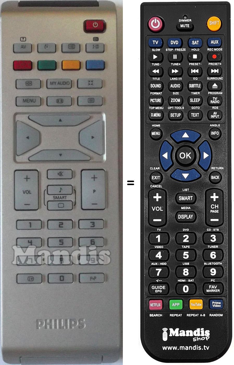 Télécommande qui remplace celle d'origine car elle possède les mêmes fonctions.