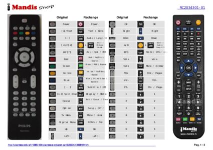 Un document est inclus pour vous aider à utiliser facilement la nouvelle télécommande, en indiquant la correspondance des boutons.