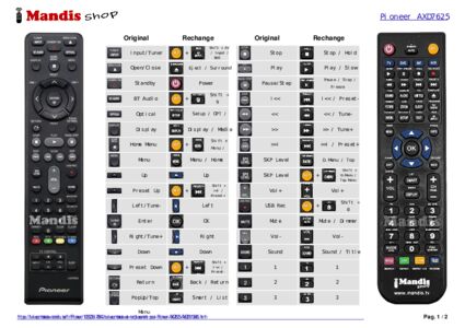 Cette télécommande remplace entièrement votre AXD7626 et offre toutes les fonctions de l'originale.