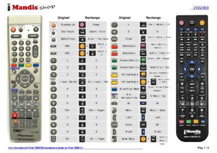Cette télécommande remplace entièrement votre VXX2969 et offre toutes les fonctions de l'originale.