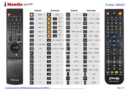Un document est inclus pour vous aider à utiliser facilement la nouvelle télécommande, en indiquant la correspondance des boutons.