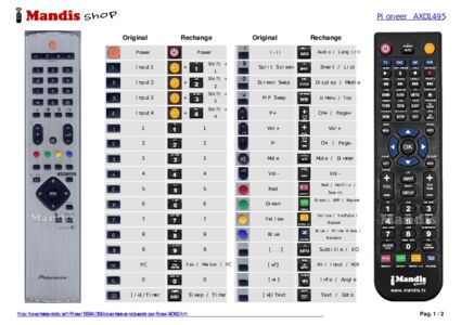 Un document est inclus pour vous aider à utiliser facilement la nouvelle télécommande, en indiquant la correspondance des boutons.