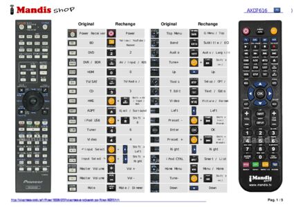 Cette télécommande remplace entièrement votre AXD7616 et offre toutes les fonctions de l'originale.