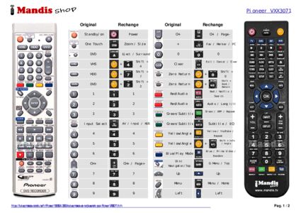 Un document est inclus pour vous aider à utiliser facilement la nouvelle télécommande, en indiquant la correspondance des boutons.