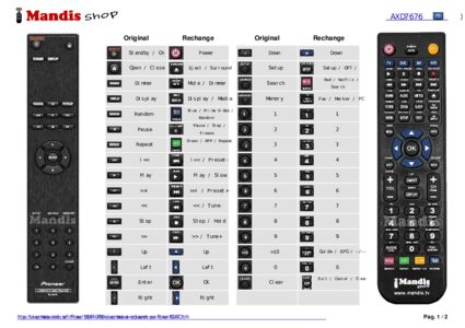 Un document est inclus pour vous aider à utiliser facilement la nouvelle télécommande, en indiquant la correspondance des boutons.