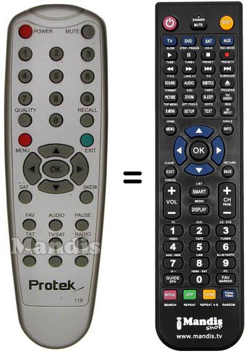 Télécommande qui remplace celle d'origine car elle possède les mêmes fonctions.