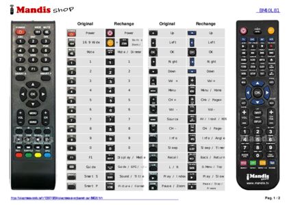 Un document est inclus pour vous aider à utiliser facilement la nouvelle télécommande, en indiquant la correspondance des boutons.