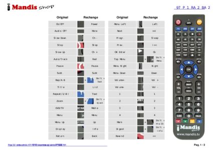 Un document est inclus pour vous aider à utiliser facilement la nouvelle télécommande, en indiquant la correspondance des boutons.