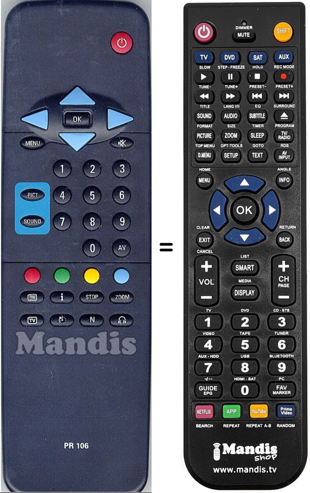 Télécommande qui remplace celle d'origine car elle possède les mêmes fonctions.