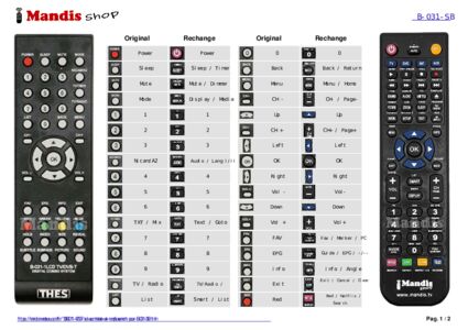 Un document est inclus pour vous aider à utiliser facilement la nouvelle télécommande, en indiquant la correspondance des boutons.