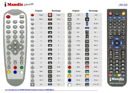 Un document est inclus pour vous aider à utiliser facilement la nouvelle télécommande, en indiquant la correspondance des boutons.