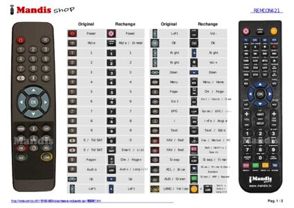 Un document est inclus pour vous aider à utiliser facilement la nouvelle télécommande, en indiquant la correspondance des boutons.