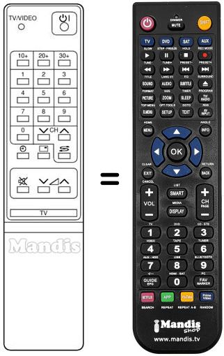 Télécommande qui remplace celle d'origine car elle possède les mêmes fonctions.