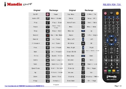 Un document est inclus pour vous aider à utiliser facilement la nouvelle télécommande, en indiquant la correspondance des boutons.