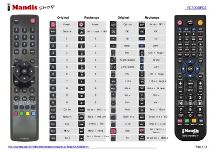 Un document est inclus pour vous aider à utiliser facilement la nouvelle télécommande, en indiquant la correspondance des boutons.