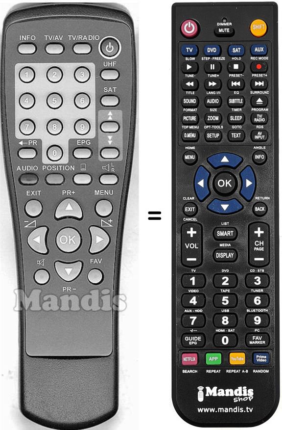 Télécommande qui remplace celle d'origine car elle possède les mêmes fonctions.