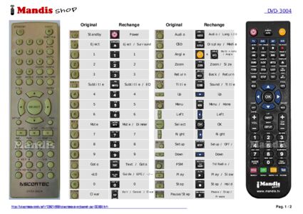 Un document est inclus pour vous aider à utiliser facilement la nouvelle télécommande, en indiquant la correspondance des boutons.