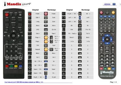 Cette télécommande remplace entièrement votre HD-999 (ver. 1) et offre toutes les fonctions de l'originale.