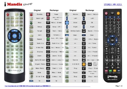 Cette télécommande remplace entièrement votre MPIX358HD et offre toutes les fonctions de l'originale.