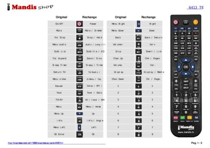 Un document est inclus pour vous aider à utiliser facilement la nouvelle télécommande, en indiquant la correspondance des boutons.