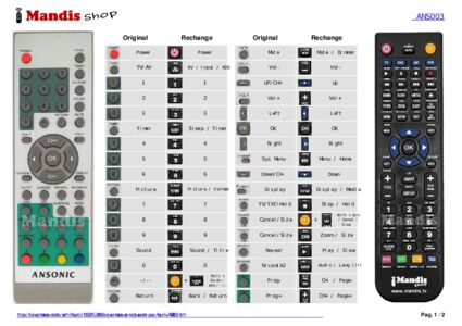 Un document est inclus pour vous aider à utiliser facilement la nouvelle télécommande, en indiquant la correspondance des boutons.